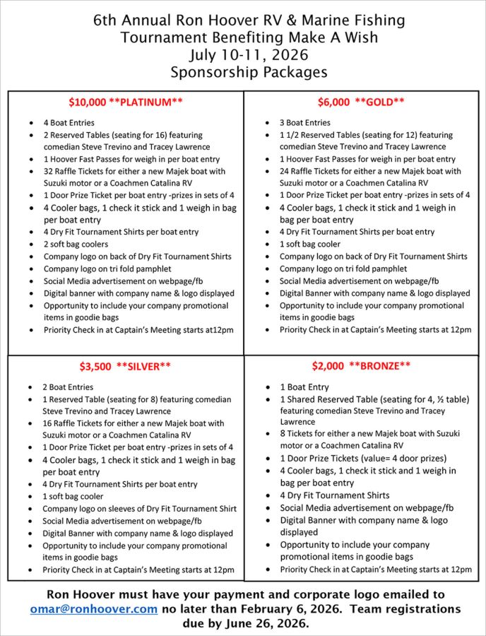 Thank you for sponsoring the 6th Annual Ron Hoover Fishing Tournament!